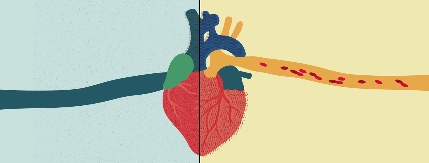 The heart has two sides. The right heart pumps blood across the chest and into the lungs where it picks up oxygen and other nutrients and takes it back to the left heart. The left heart can now distribute this oxygen-enriched blood up and down the body to all the other organs. It is a fine-tuned machine until it fails us.