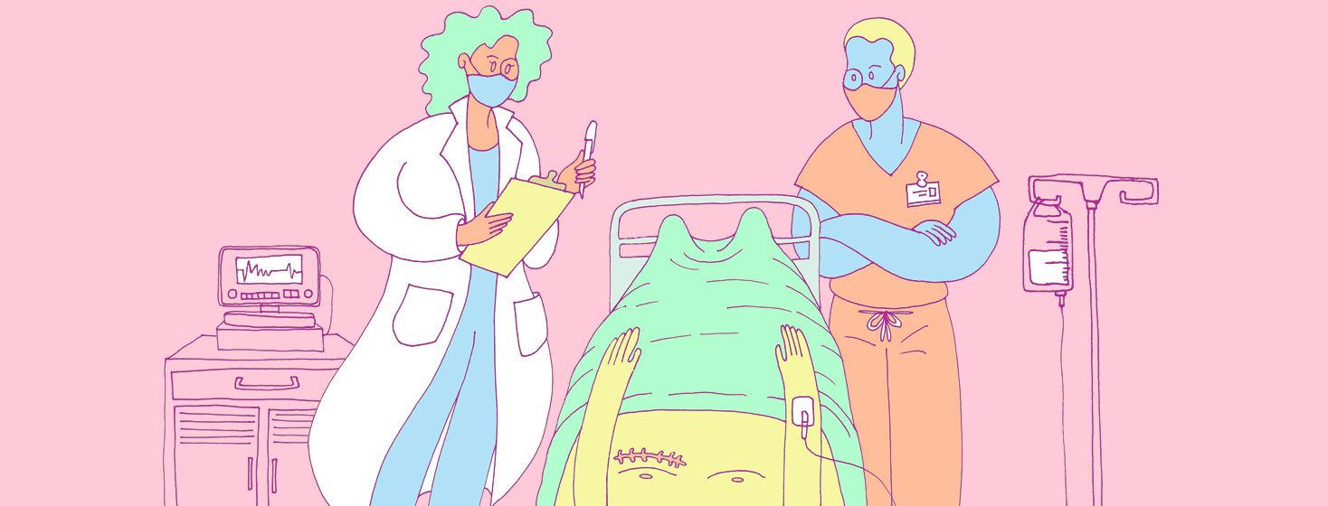 “Your transplant was a complete success,” a male figure with a mask informed me.