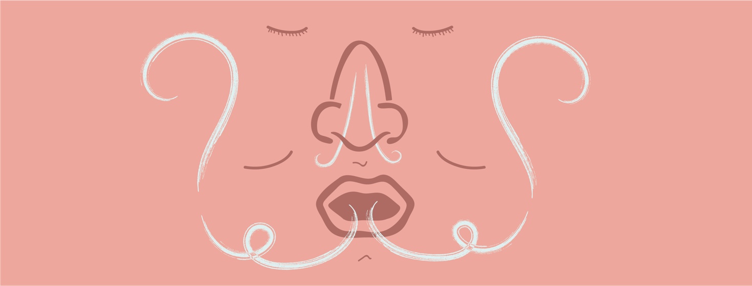 It's a good idea to start by counting. For example, you can inhale to the count of 2 and exhale to the count of 4. It's simple. You inhale through your nose and exhale through your mouth with your lips pursed into an O.
